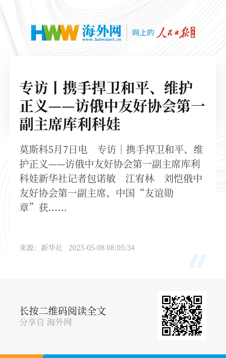 新华社莫斯科5月7日电 专访|携手捍卫和平、维护正义——访俄中友好协会第一副主席库利科娃