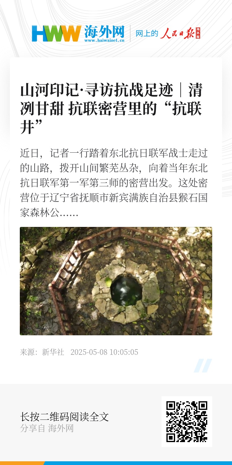在这处密营的山坡上,有一口东北抗日联军战士打出的水井,井水清冽甘甜,经久不断,滋润着一代又一代的山里人。