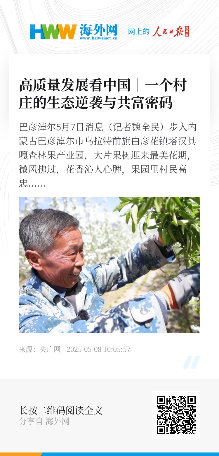 央广网巴彦淖尔5月7日消息(记者魏全民)步入内蒙古巴彦淖尔市乌拉特前旗白彦花镇塔汉其嘎查林果产业园,大片果树迎来最美花期,微风拂过,花香沁人心脾,果园里村民高忠标正专注地修剪着果树。“我今年60多岁了,在这里打工五六年了,一个月能挣五六千块钱,挺好的。”