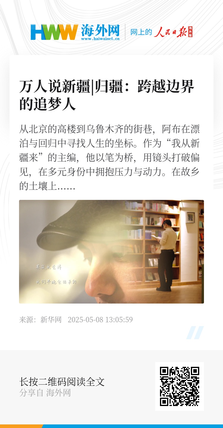 从北京的高楼到乌鲁木齐的街巷,阿布在漂泊与回归中寻找人生的坐标。作为“我从新疆来”的主编,他以笔为桥,用镜头打破偏见,在多元身份中拥抱压力与动力。在故乡的土壤上,阿布不再迷失——他选择用行动证明:真正的自由,是带着责任前行,将异乡的迷茫化作故土的底气。