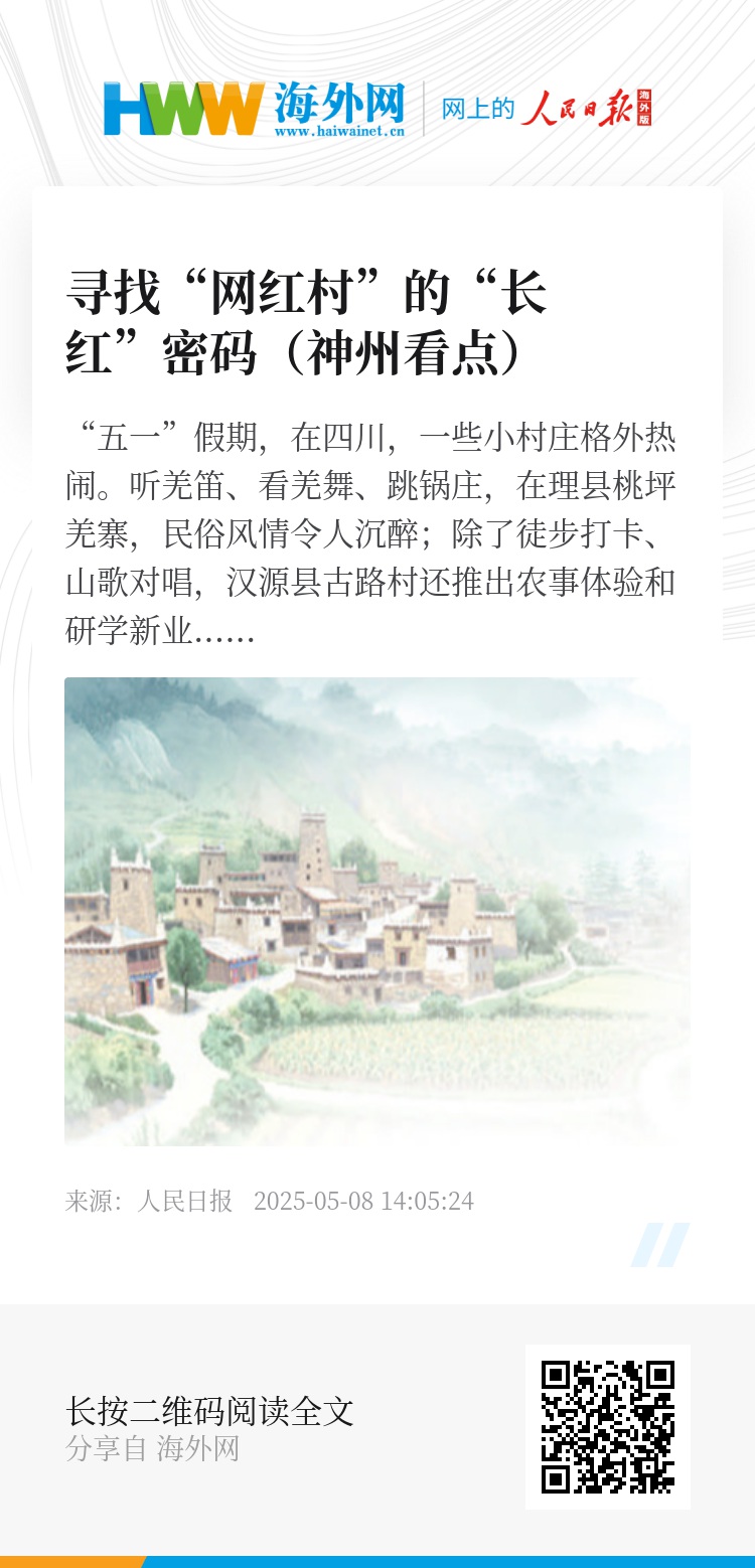 听羌笛、看羌舞、跳锅庄,在理县桃坪羌寨,民俗风情令人沉醉;除了徒步打卡、山歌对唱,汉源县古路村还推出农事体验和研学新业态;在崇州市竹艺村,风筝手作、非遗扎染等玩法吸引不少游客。