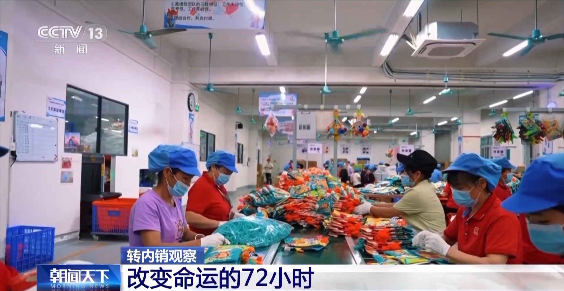 记者来到东莞茶山镇的这家玩具企业时,工人正加班加点地将产品上的英语包装换成中文包装。企业负责人王振告诉记者,美国市场占企业出口份额的20%,高达145%的关税袭来后,原有的1000多个美国订单几乎全部被取消。那段时间,他感受到了前所未有的压力。