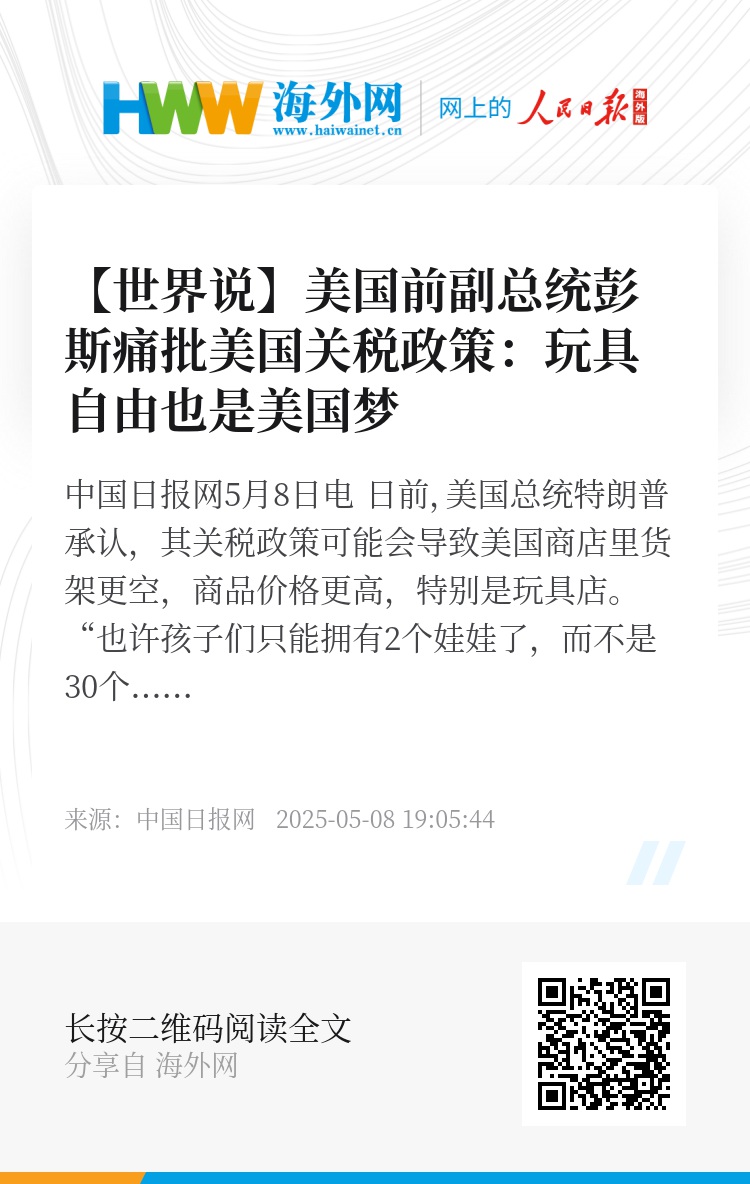 彭斯指出,特朗普政府当前对所有进口商品加征关税的做法,已经演变为一种“新的产业政策”,不仅无助于纠正贸易不公,反而可能推高通货膨胀,加重消费者负担,损害美国经济根基。