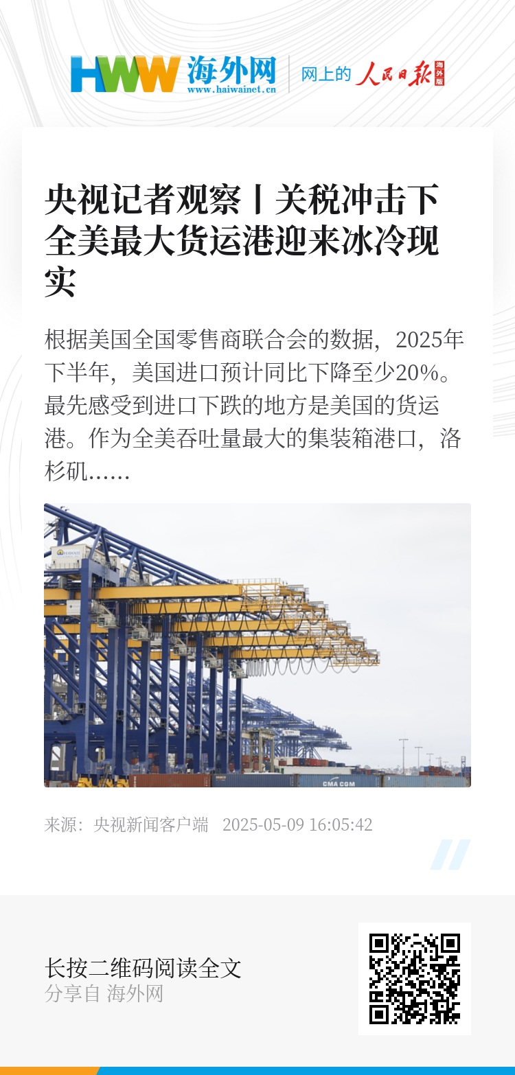 当地时间5月8日,央视记者探访了洛杉矶港。港口的拖车司机担心挣不到钱,表示如果抵港货物量没有回升的话,那他就要考虑去其他地方找工作了。