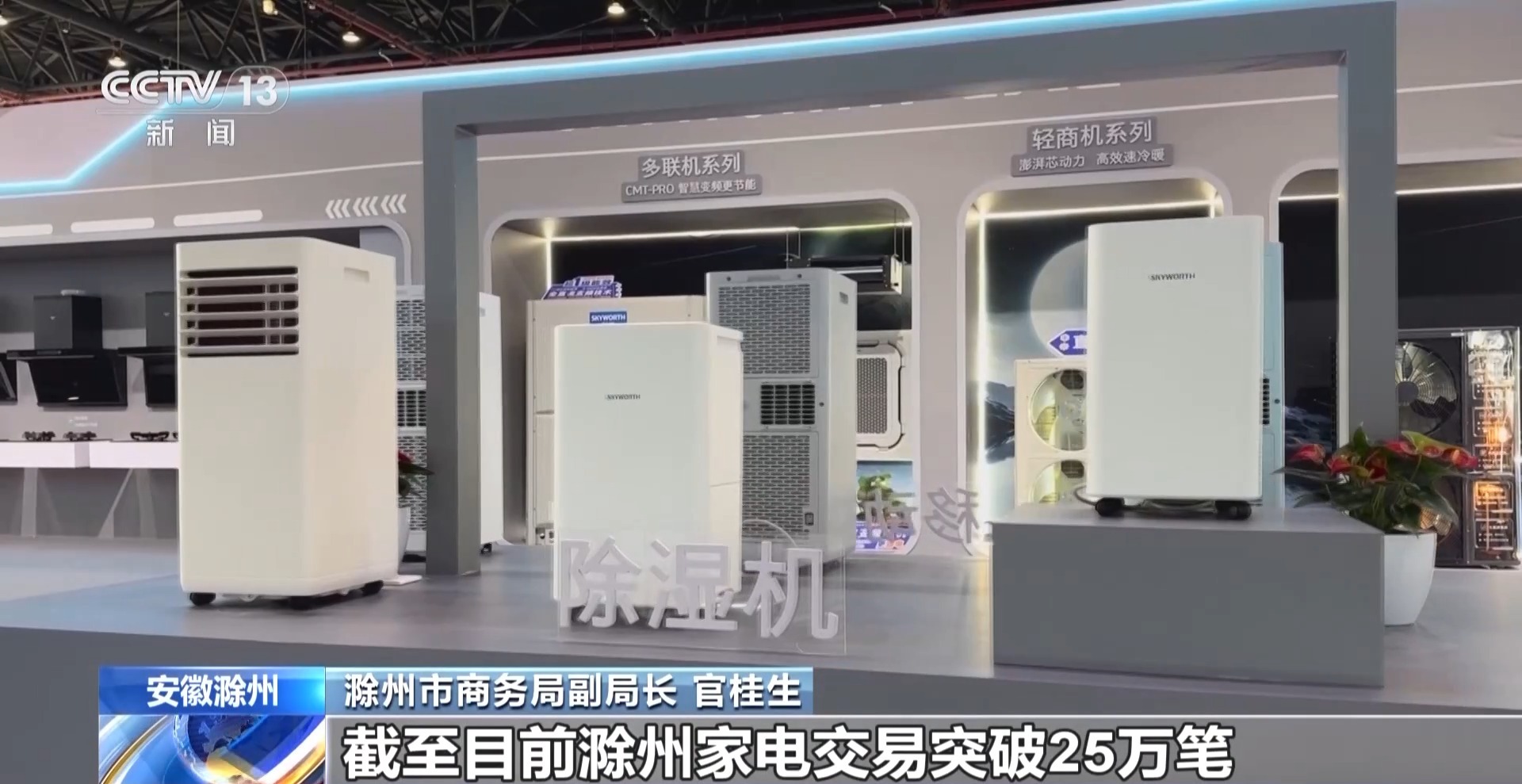 滁州市商务局副局长 官桂生:涵盖375家企业的“外贸转内销产品库”,截至目前滁州家电交易突破25万笔,一季度家电零售额同比增长53.5%,带动社会消费品零售总额增长6.3%。