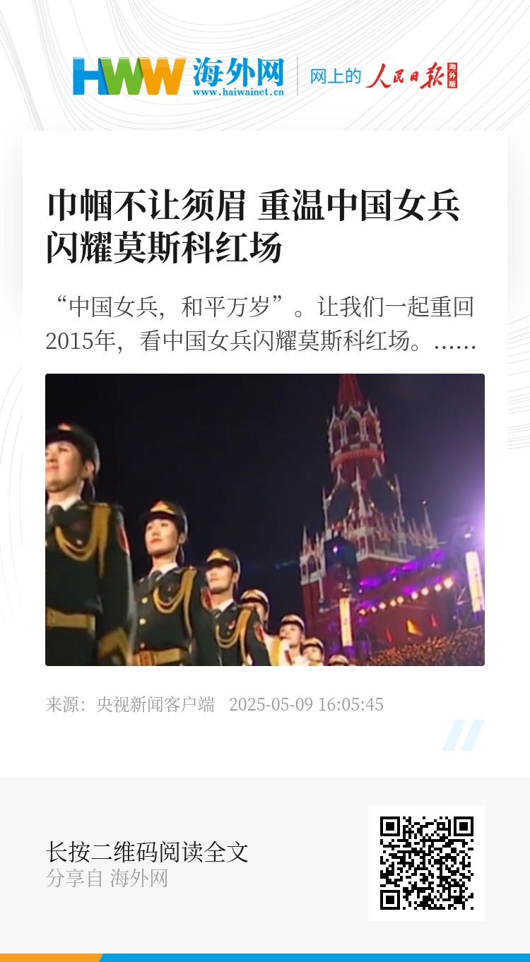 “中国女兵,和平万岁”。让我们一起重回2015年,看中国女兵闪耀莫斯科红场。