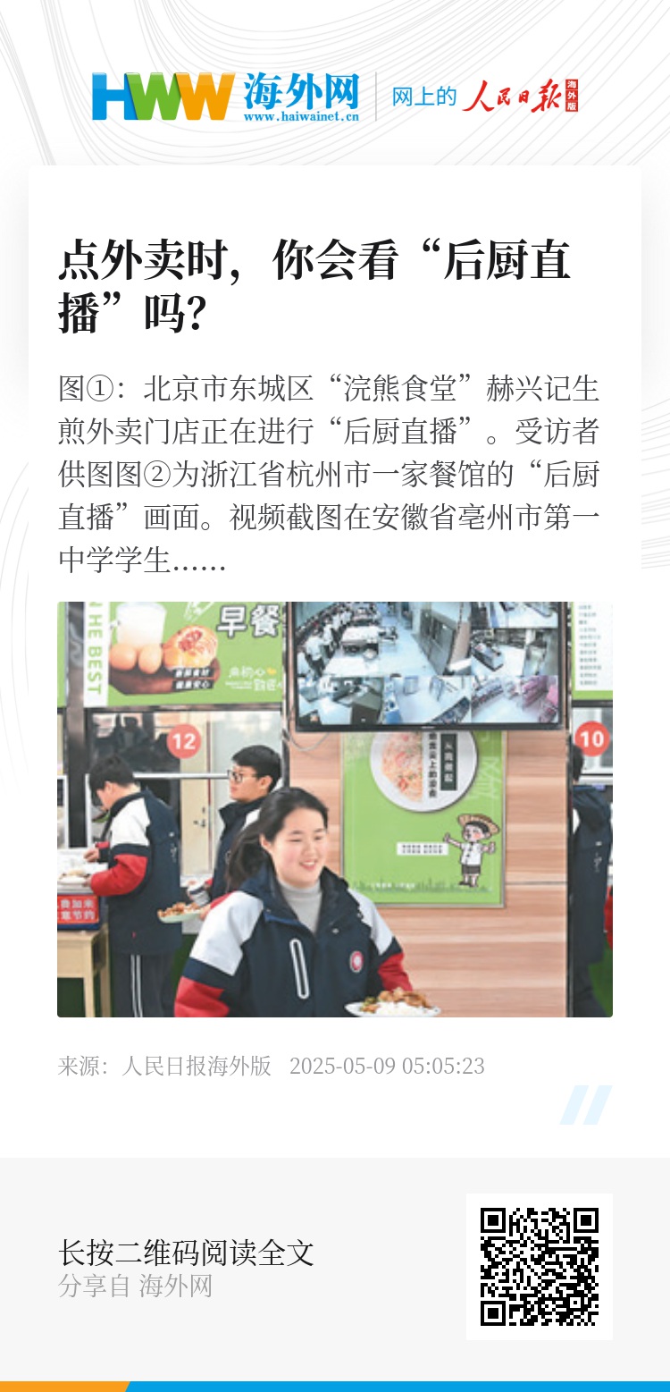 “我最近才开始注意到‘明厨亮灶’这个功能。我会先看一下商家的后厨是否干净,再决定要不要下单。”曾瑛边滑动页面边说,“以前只能看评价、看评分,现在还能看到后厨,放心多了。”