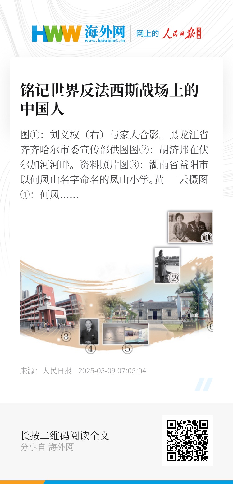 编者按:今年是中国人民抗日战争暨世界反法西斯战争胜利80周年。在那场正义与邪恶、光明与黑暗、自由与奴役的殊死战斗中,中国与50多个国家的人民同仇敌忾、英勇战斗,并肩打败了不可一世的法西斯势力。在世界反法西斯战场上,中国人民与正义力量一起,勠力同心、反抗邪恶、命运与共。5月9日世界反法西斯战争胜利日到来之际,本版推出特别报道,重温英雄的感人故事,呈现他们身上闪耀的人性之光、和平之光。