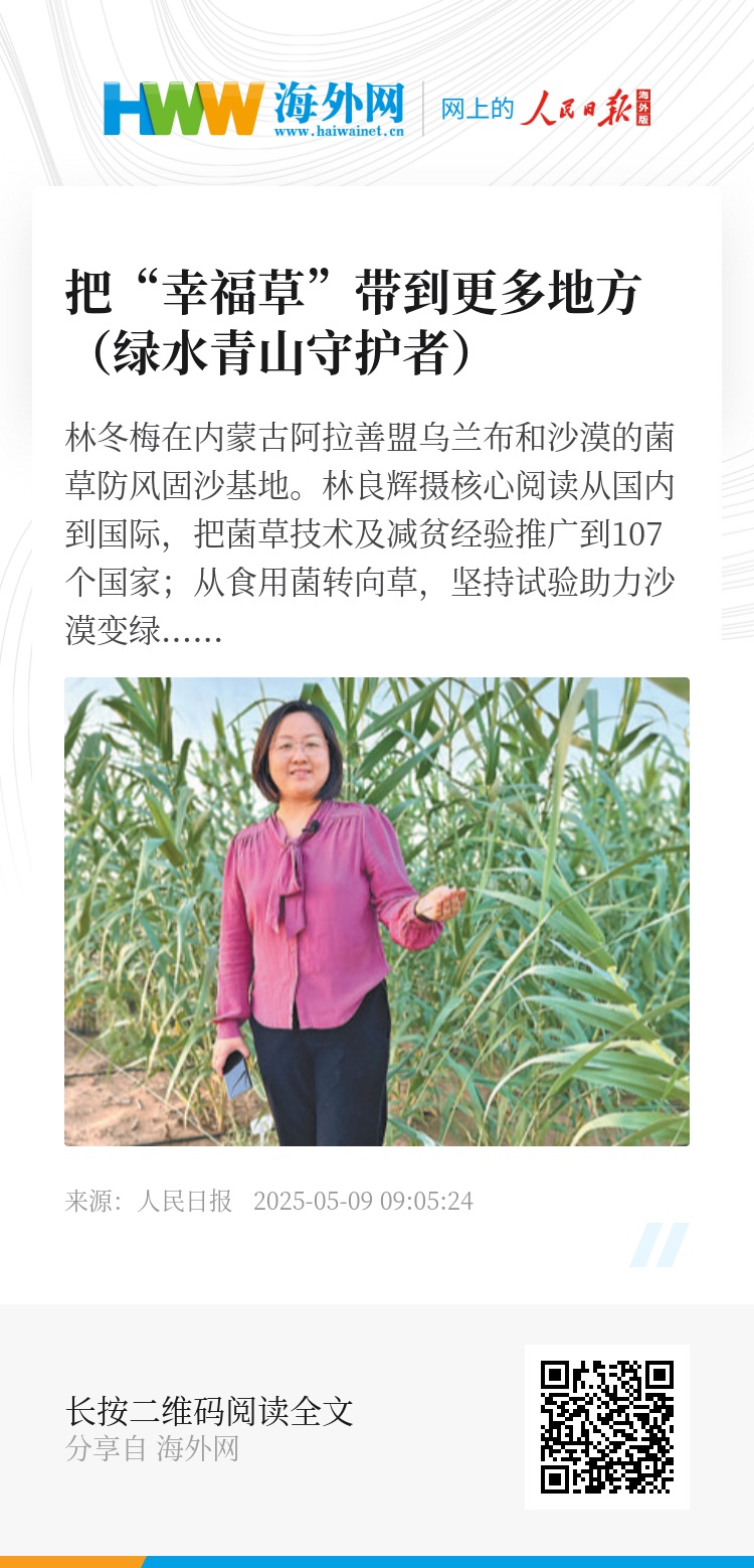 如今,林冬梅发现自己越来越热爱菌草事业。“看到各国农户用菌草脱贫致富,看到菌草在沙漠长成绿色屏障,心中无比满足。”林冬梅说。