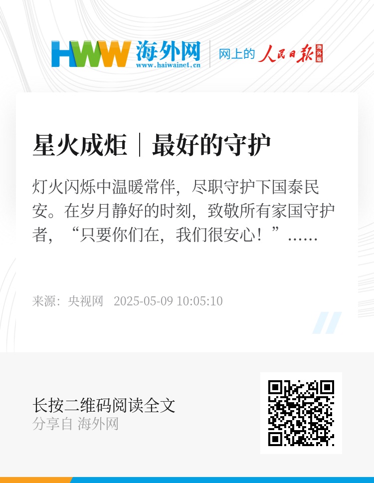 灯火闪烁中温暖常伴,尽职守护下国泰民安。在岁月静好的时刻,致敬所有家国守护者,“只要你们在,我们很安心!”
