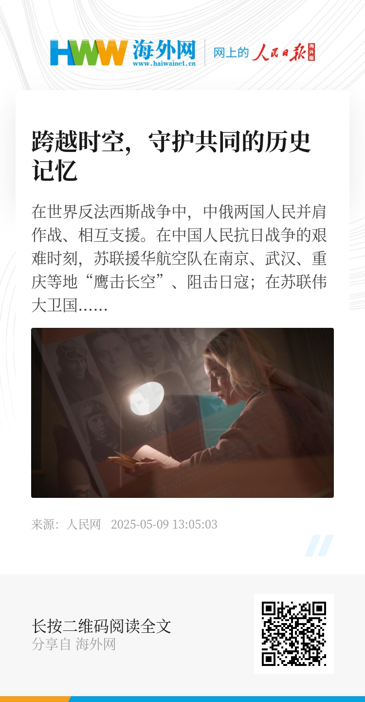 今年是中国人民抗日战争、苏联伟大卫国战争暨世界反法西斯战争胜利80周年。中国和俄罗斯作为亚洲和欧洲两个主要战场,在抗击法西斯和军国主义的战斗中携手捍卫正义与和平。两国人民用鲜血和生命凝结的深厚情谊,如黄河之水奔腾不息,似伏尔加河宽广深沉,成为中俄世代友好的不竭源泉。