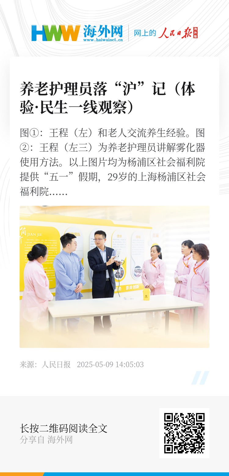 “五一”假期,29岁的上海杨浦区社会福利院员工王程得知自己获评2025年度上海市劳动模范。而在3年前,从事养老护理行业4年的他,拿到了崭新的上海户口本,成为上海市首位作为重点人才引进落户的养老护理员。