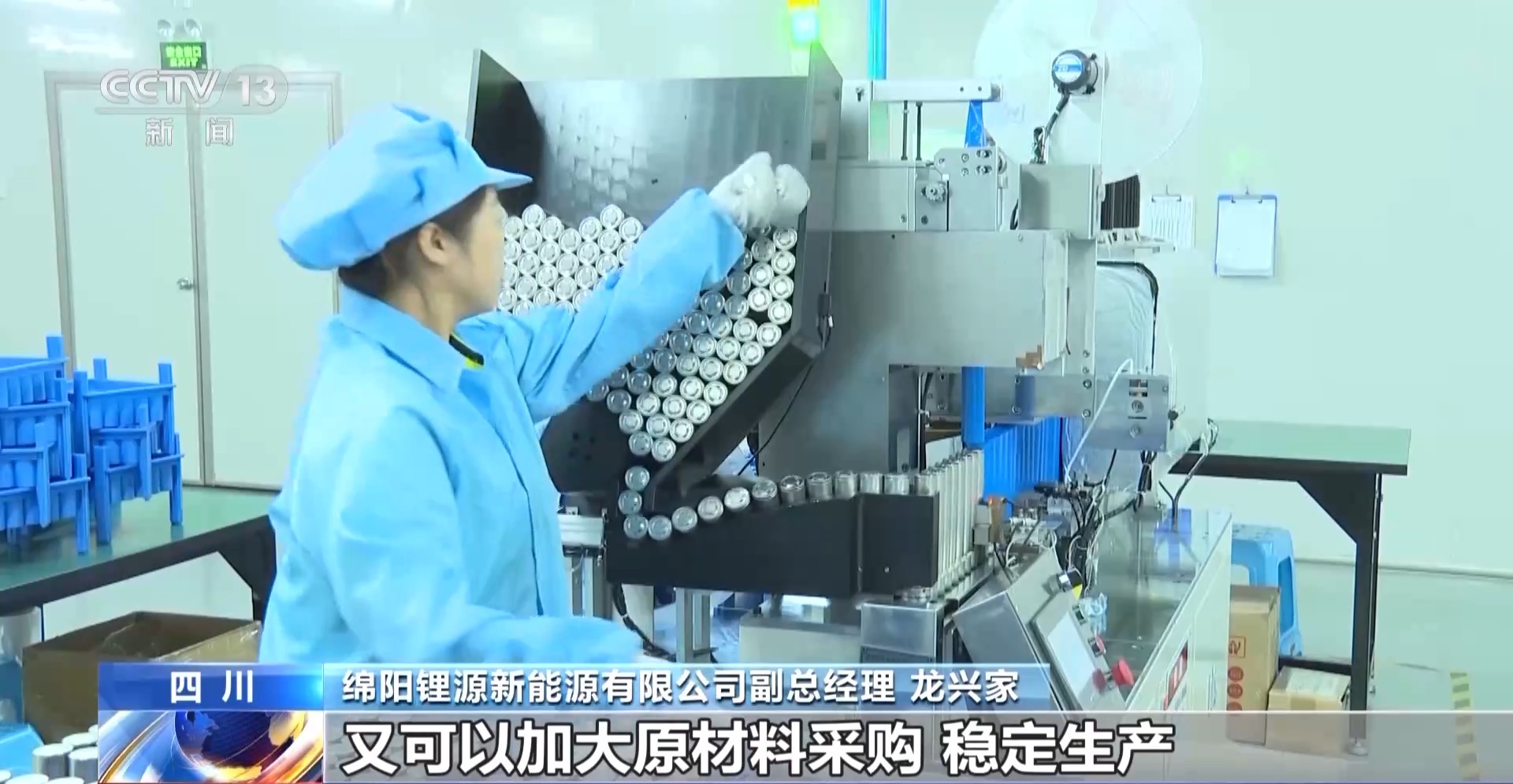 绵阳锂源新能源有限公司副总经理 龙兴家:有了资金的支持,我们既能技改,又可以加大原材料采购,稳定生产,也能更安心地拓展市场了。