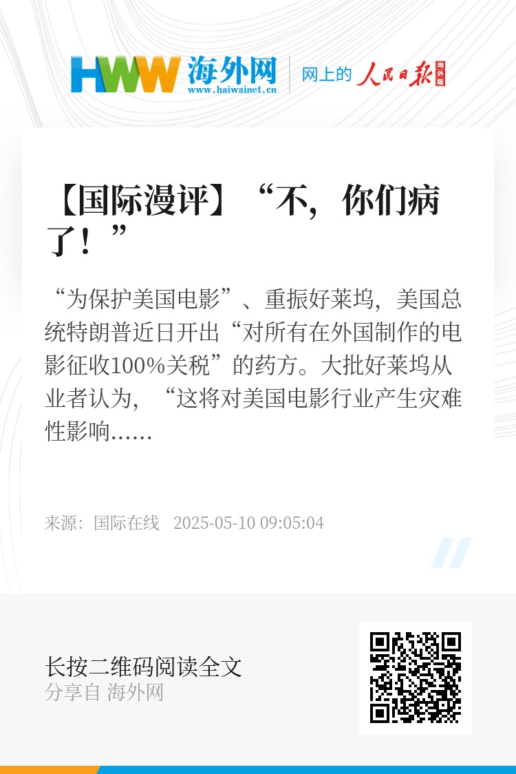 “为保护美国电影”、重振好莱坞,美国总统特朗普近日开出“对所有在外国制作的电影征收100%关税”的药方。大批好莱坞从业者认为,“这将对美国电影行业产生灾难性影响”。
