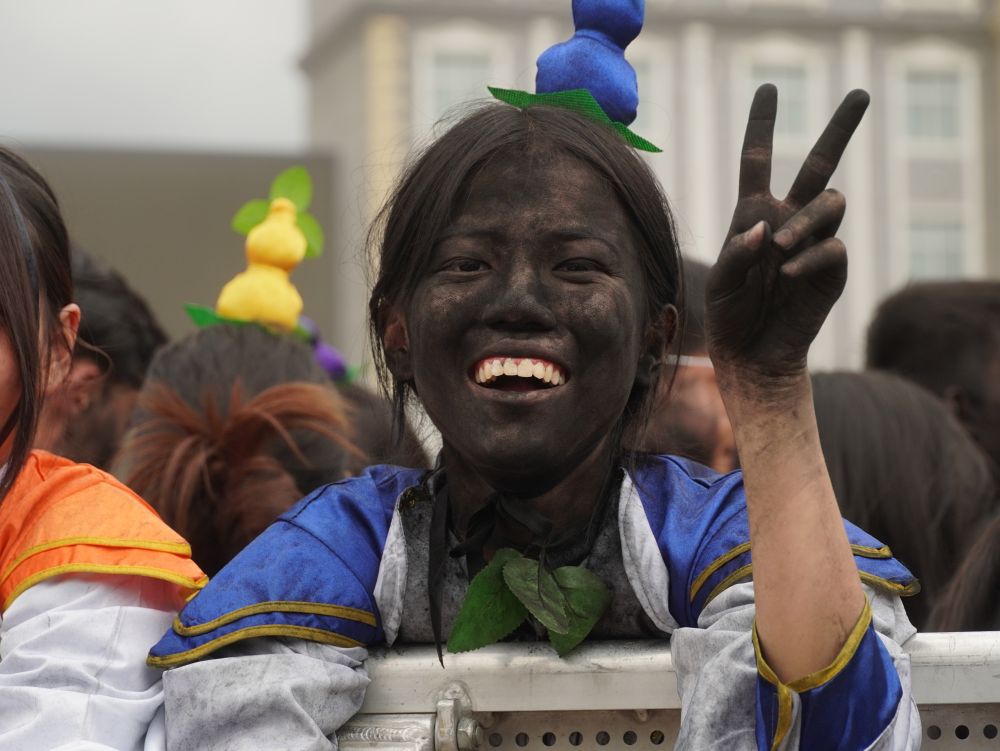 今年,墨江县还把传统民俗活动“抹黑脸”狂欢进行了升级,将原本不易清洗的锅底灰替换为以咖啡粉为主要原料的抹黑脸粉。