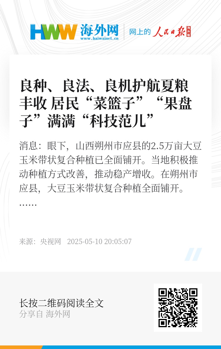 央视网消息:眼下,山西朔州市应县的2.5万亩大豆玉米带状复合种植已全面铺开。当地积极推动种植方式改善,推动稳产增收。