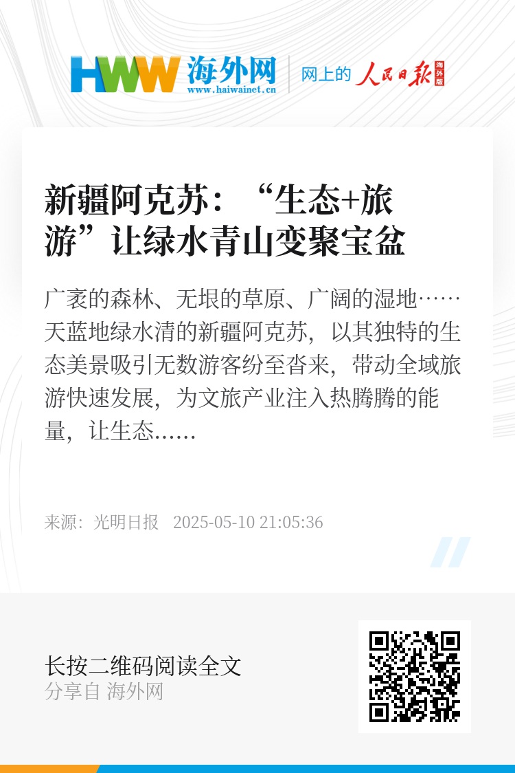 广袤的森林、无垠的草原、广阔的湿地……天蓝地绿水清的新疆阿克苏,以其独特的生态美景吸引无数游客纷至沓来,带动全域旅游快速发展,为文旅产业注入热腾腾的能量,让生态“颜值”变“产值”,助力经济社会高质量发展。