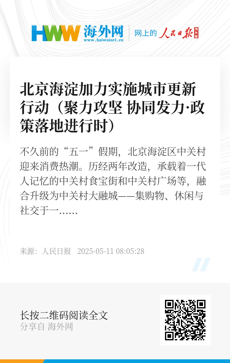 “扩内需、补短板、促发展,城市更新是重要抓手。”海淀区委书记张革介绍,今年2月初、3月底,海淀已下达两批251个城市更新项目,总投资超千亿元,涉及改造面积约1435.8万平方米。“我们将通过城市更新,进一步优化城市空间结构、提升城市功能、改善群众生活品质、加快新旧动能转换。”张革说。