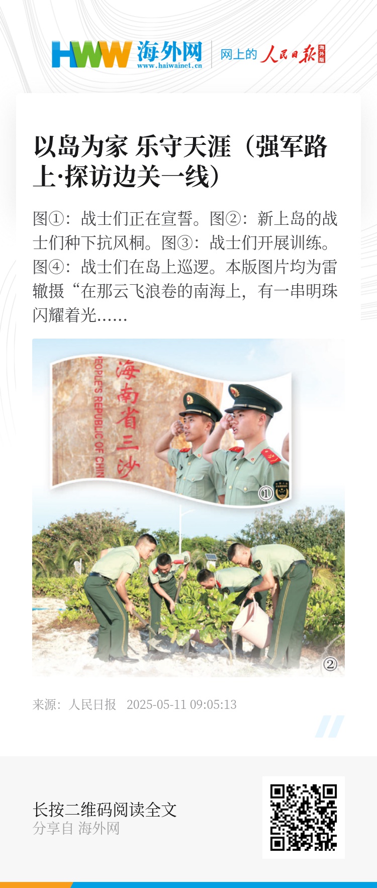 “脚下的战位是国土,头顶的国旗是信仰。”中士李高铖深情地说,“在永兴岛升起五星红旗,是中队官兵最为珍视的任务之一。在大家眼中,岛上的国旗和天安门广场的国旗一样,都是国家主权的象征。”