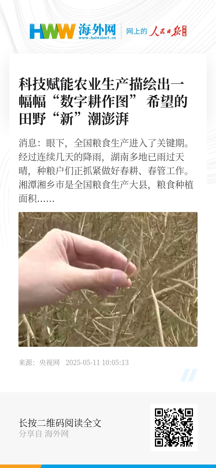 央视网消息:眼下,全国粮食生产进入了关键期。经过连续几天的降雨,湖南多地已雨过天晴,种粮户们正抓紧做好春耕、春管工作。湘潭湘乡市是全国粮食生产大县,粮食种植面积常年稳定在100万亩以上。当地不少农户采用“稻油轮作”的模式,眼下正是收割油菜籽、播种一季稻的农忙时节。详细情况,马上连线正在现场的总台记者葛才逸。