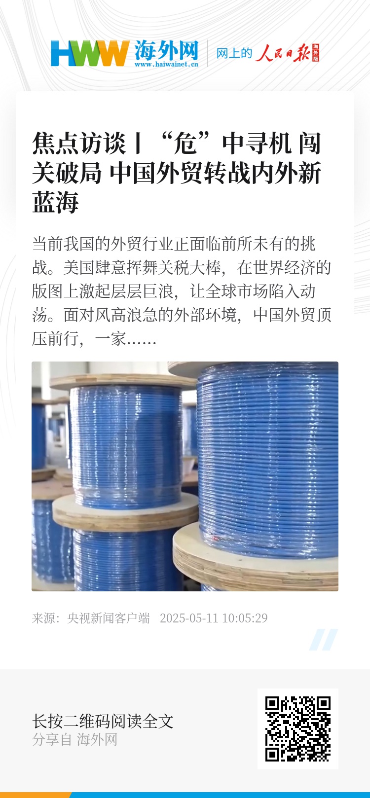 当前我国的外贸行业正面临前所未有的挑战。美国肆意挥舞关税大棒,在世界经济的版图上激起层层巨浪,让全球市场陷入动荡。面对风高浪急的外部环境,中国外贸顶压前行,一家家外贸企业都在积极想办法、找出路。怎样渡过当下的难关?美国的订单中断了,新的订单在哪里?危机之下,中国的外贸企业是怎么想怎么做的呢?