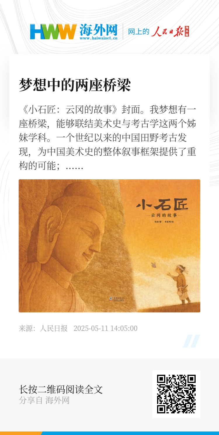 我梦想有一座桥梁,能够联结美术史与考古学这两个姊妹学科。一个世纪以来的中国田野考古发现,为中国美术史的整体叙事框架提供了重构的可能;而美术史更为开放的分析方法,也为考古学注入了新的活力。近年来,这两个学科的交错地带——或称为美术考古学,或称为考古美术史——正在成为一个充满生机的学术生长点。
