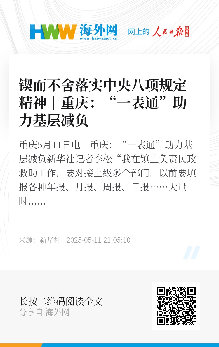 新华社重庆5月11日电 重庆:“一表通”助力基层减负