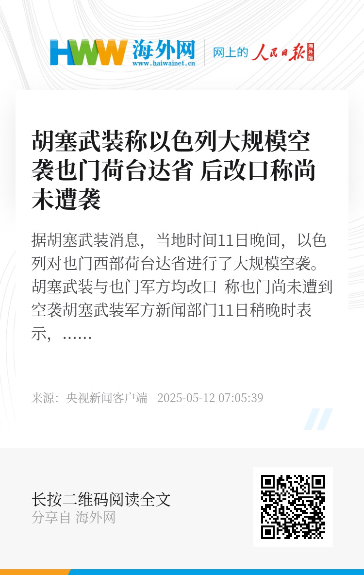 随后,也门军方新闻部门再次于11日22时20分发布消息称,也门尚未遭到任何空袭。(总台记者 张雨辰)