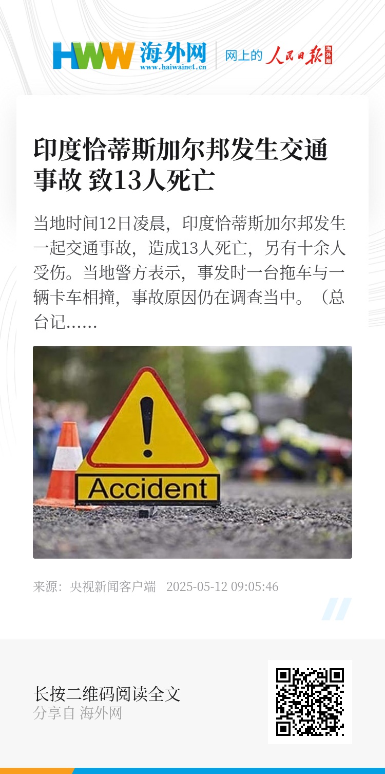 当地时间12日凌晨,印度恰蒂斯加尔邦发生一起交通事故,造成13人死亡,另有十余人受伤。