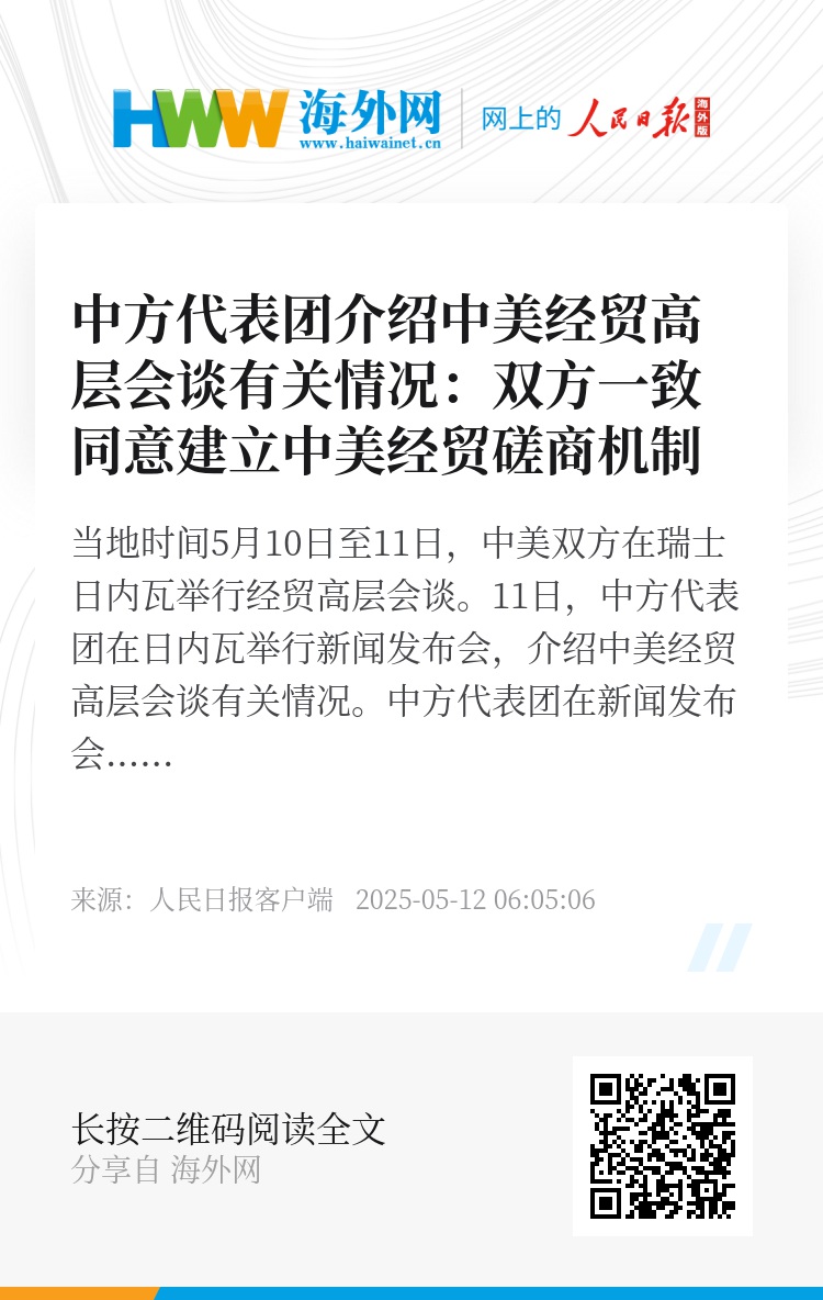 当地时间5月10日至11日,中美双方在瑞士日内瓦举行经贸高层会谈。11日,中方代表团在日内瓦举行新闻发布会,介绍中美经贸高层会谈有关情况。