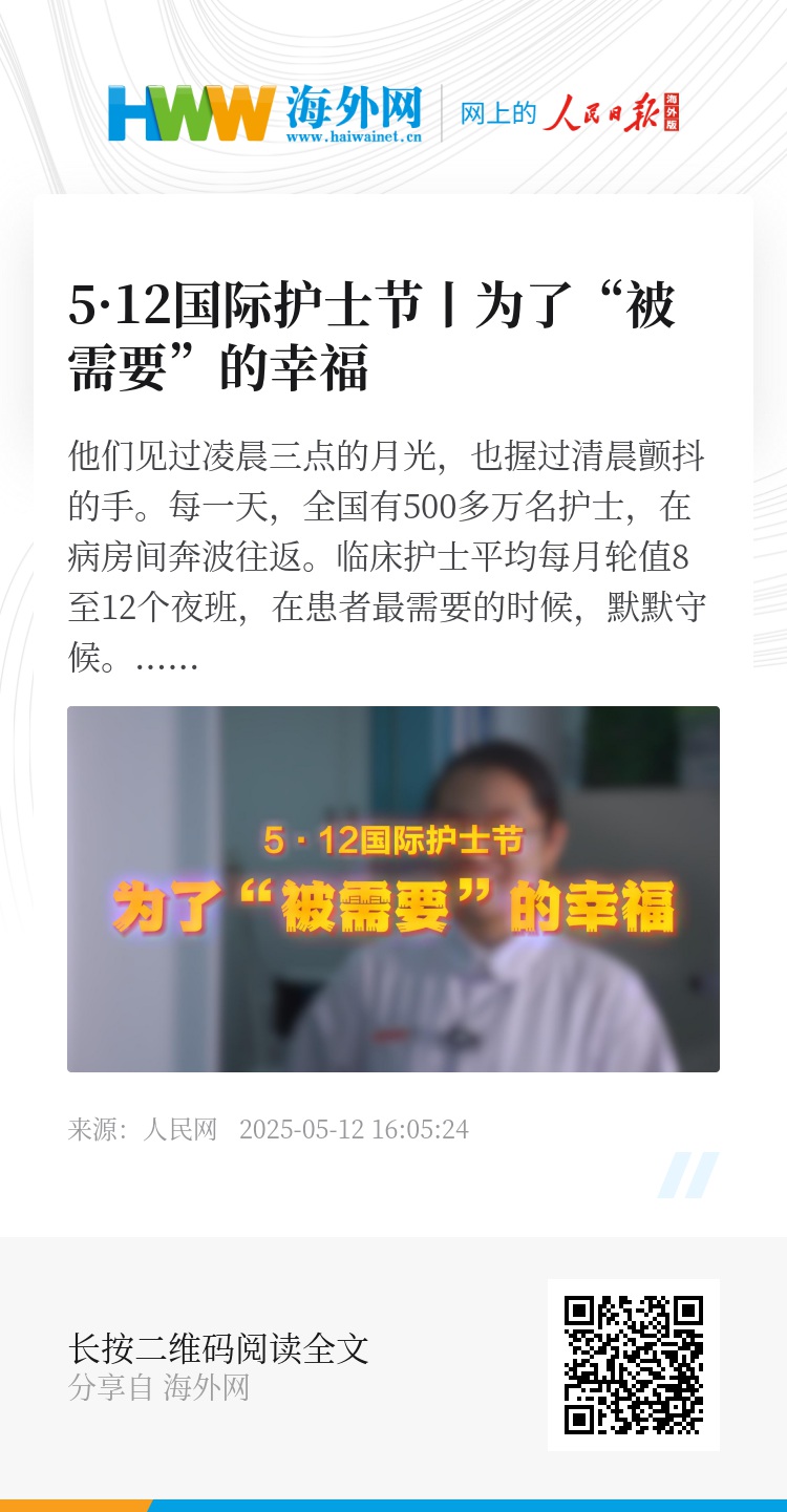 5·12国际护士节,致敬所有提灯前行的人——护士节快乐!(人民网记者 杨迪 乔业琼)