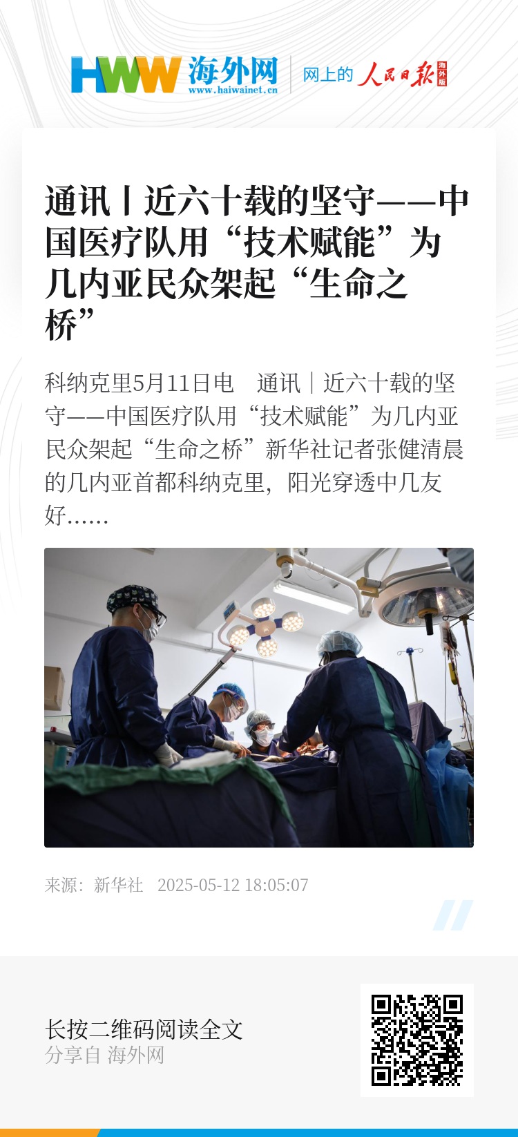 新华社科纳克里5月11日电 通讯|近六十载的坚守——中国医疗队用“技术赋能”为几内亚民众架起“生命之桥”