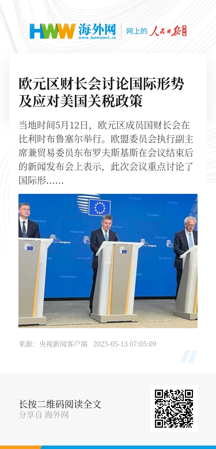 当地时间5月12日,欧元区成员国财长会在比利时布鲁塞尔举行。欧盟委员会执行副主席兼贸易委员东布罗夫斯基斯在会议结束后的新闻发布会上表示,此次会议重点讨论了国际形势以及美国关税对欧盟、美国和全球经济的宏观影响。