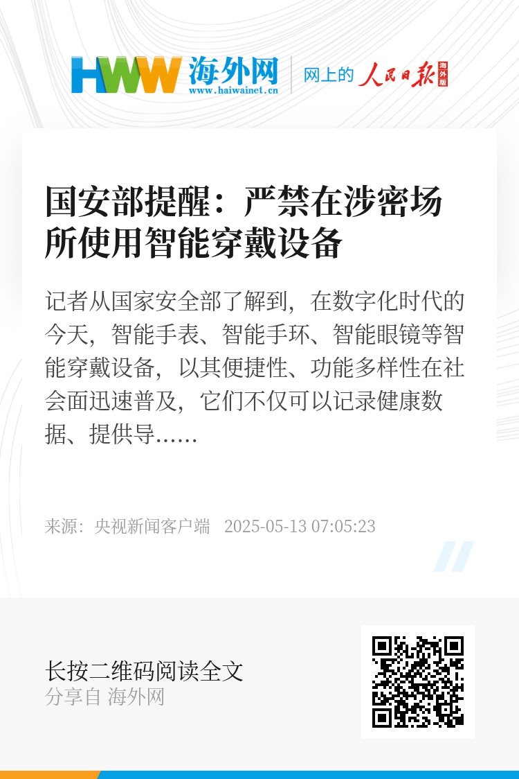 一块手表、一枚手环,或许就是守护国家安全的“第一道闸门”,我们在享受科技便利的同时,更要守护好个人隐私和国家秘密,谨防智能穿戴设备失密泄密,共同守护智能时代的国家安全。