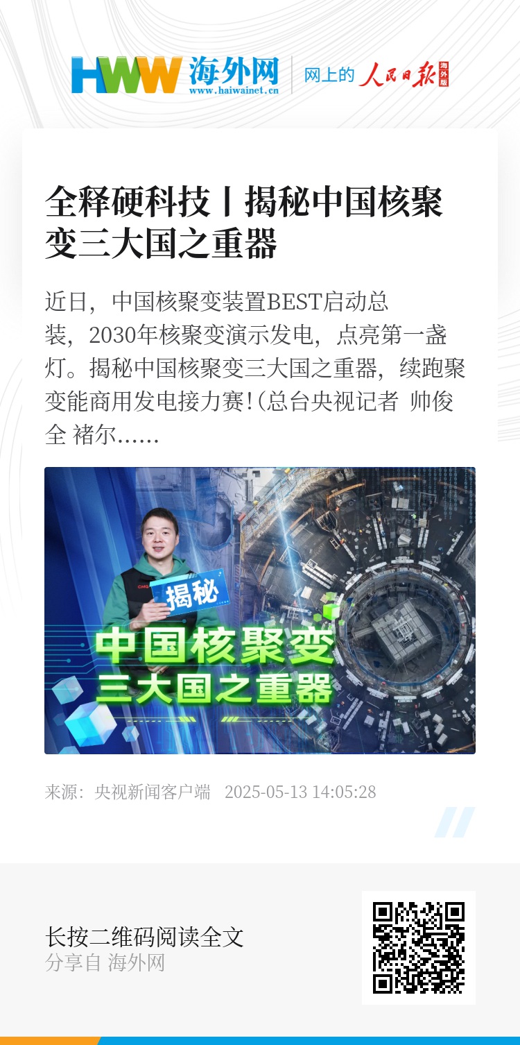 近日,中国核聚变装置BEST启动总装,2030年核聚变演示发电,点亮第一盏灯。揭秘中国核聚变三大国之重器,续跑聚变能商用发电接力赛!