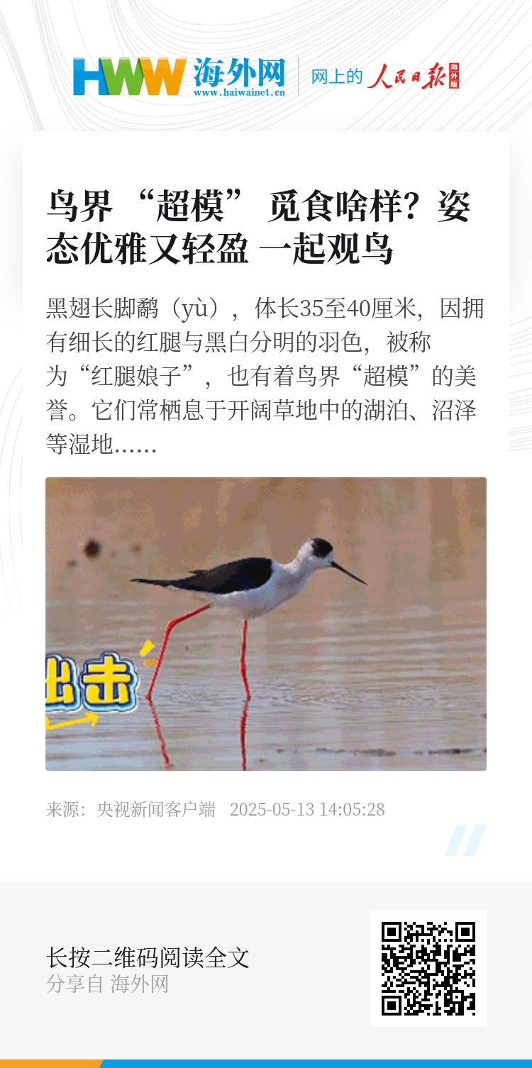 黑翅长脚鹬(yù),体长35至40厘米,因拥有细长的红腿与黑白分明的羽色,被称为“红腿娘子”,也有着鸟界“超模”的美誉。