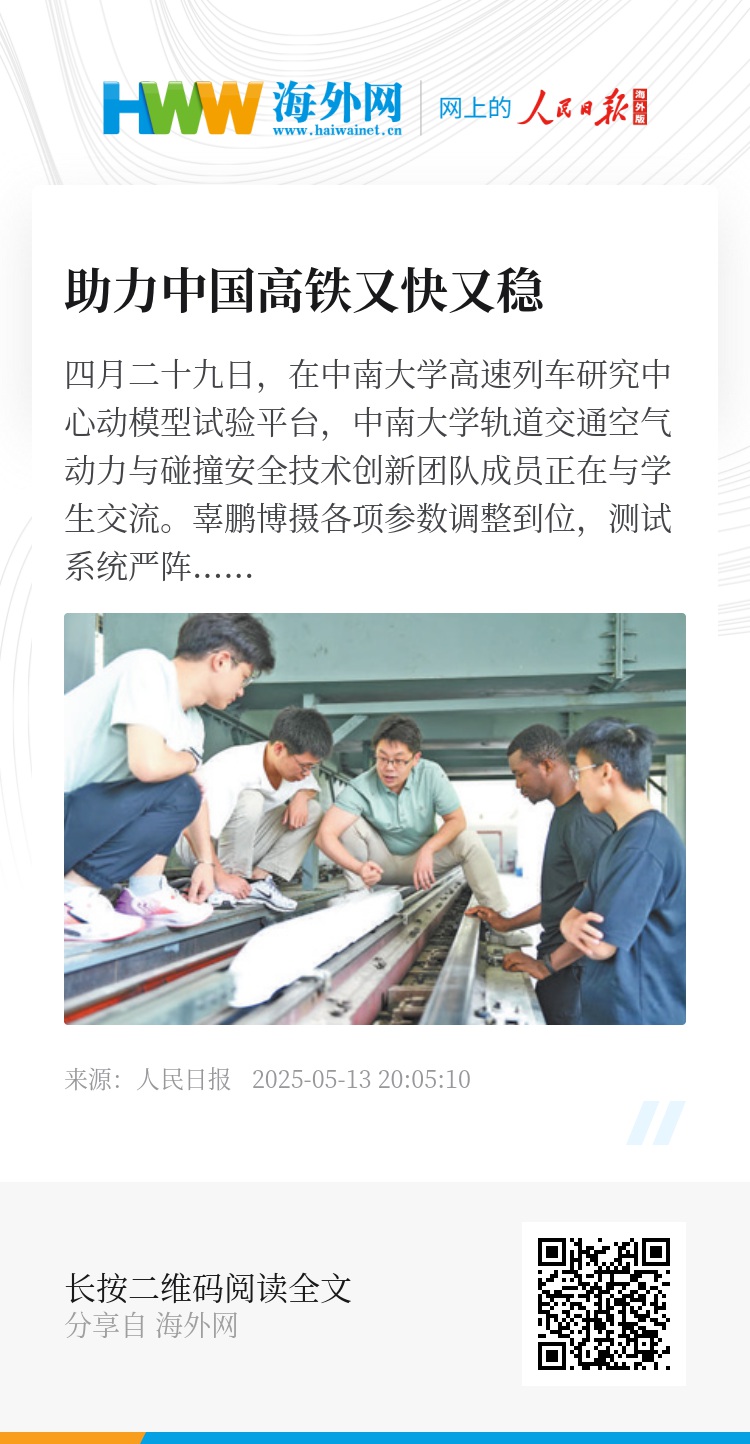 “在半秒内,模型要从时速0公里加速到500公里,这是国际上第一套时速500公里的列车空气动力动模实验系统。”中南大学轨道交通空气动力与碰撞安全技术创新团队核心成员、高速列车研究中心党支部书记鲁寨军介绍,我国高速列车流线型外形“长什么样”,很大程度上取决于这里产生的实验数据。