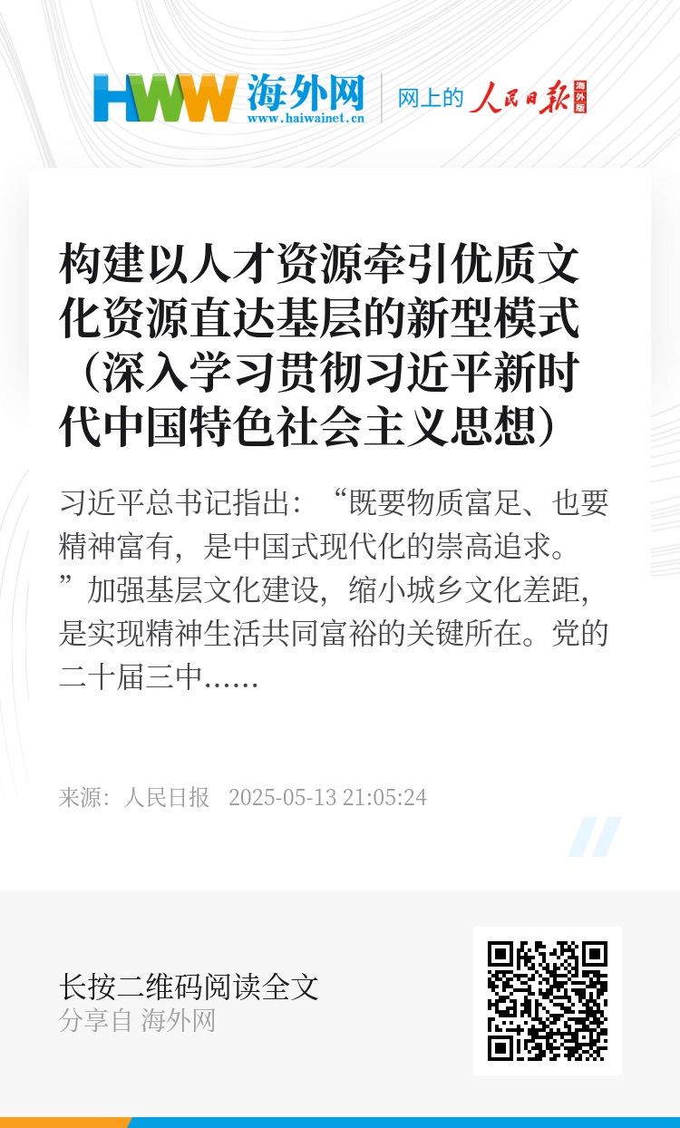 习近平总书记指出:“既要物质富足、也要精神富有,是中国式现代化的崇高追求。”加强基层文化建设,缩小城乡文化差距,是实现精神生活共同富裕的关键所在。党的二十届三中全会《决定》提出“建立优质文化资源直达基层机制”。浙江承担着高质量发展建设共同富裕示范区的光荣使命,于2024年创新实施文化特派员制度,系统性遴选首批1570余名优秀文化人才派驻乡镇(街道)、结对村(社区)开展文化建设帮扶,全面嵌入基层文化场域,建立起优质文化资源直达基层的顺畅通道。这是贯彻落实习近平文化思想和习近平总书记重要要求的扎实举措。