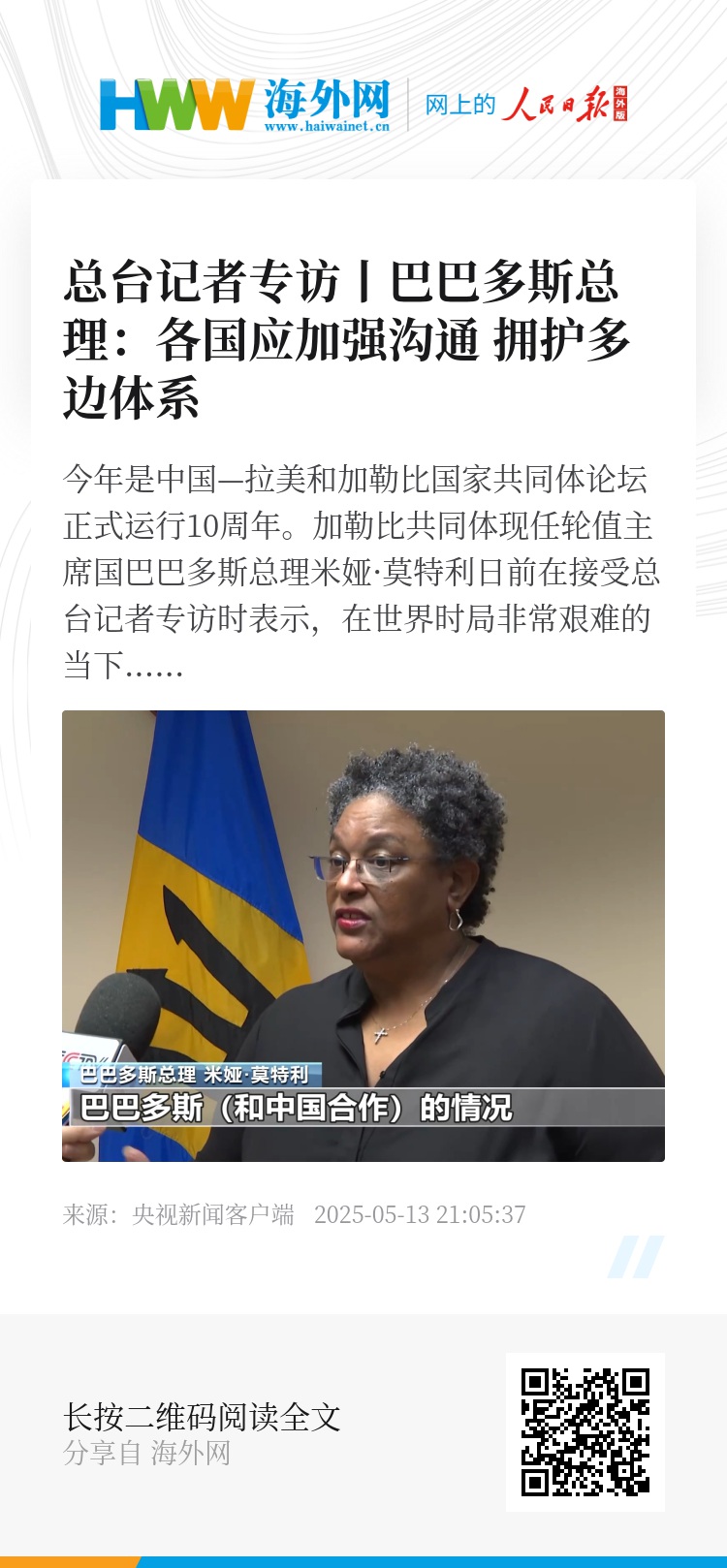 2023年,莫特利总理在访华时就曾表示,巴方反对“脱钩断链”,支持维护以世界贸易组织为核心的多边贸易体制。在此次采访中,莫特利再次强调,在当今世界经济面临复杂因素的背景下,更应该支持多边体系。