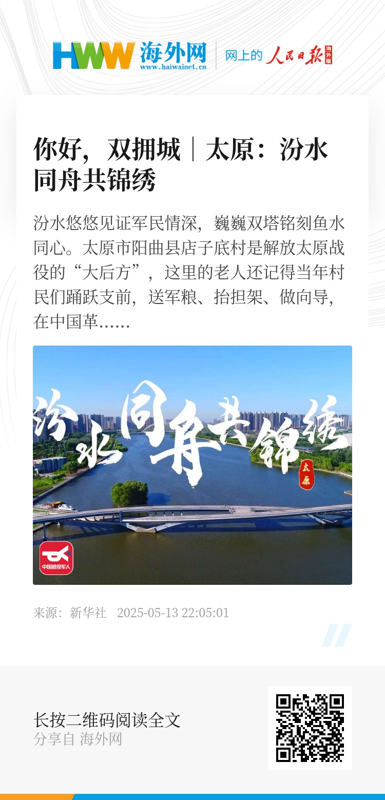 从“双拥示范街”钟楼街到地铁车厢的国防教育,从“双免”政策的暖心举措到“双拥驿站”的贴心服务,太原市正以实实在在的行动,让双拥传统焕发时代光彩。(曹舒昊)