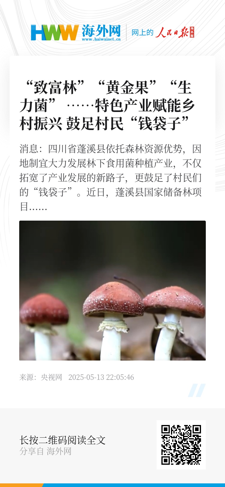 央视网消息:四川省蓬溪县依托森林资源优势,因地制宜大力发展林下食用菌种植产业,不仅拓宽了产业发展的新路子,更鼓足了村民们的“钱袋子”。