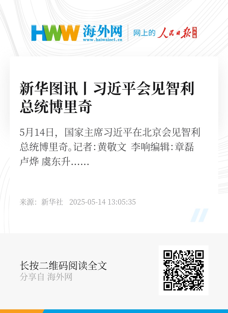 5月14日,国家主席习近平在北京会见智利总统博里奇。