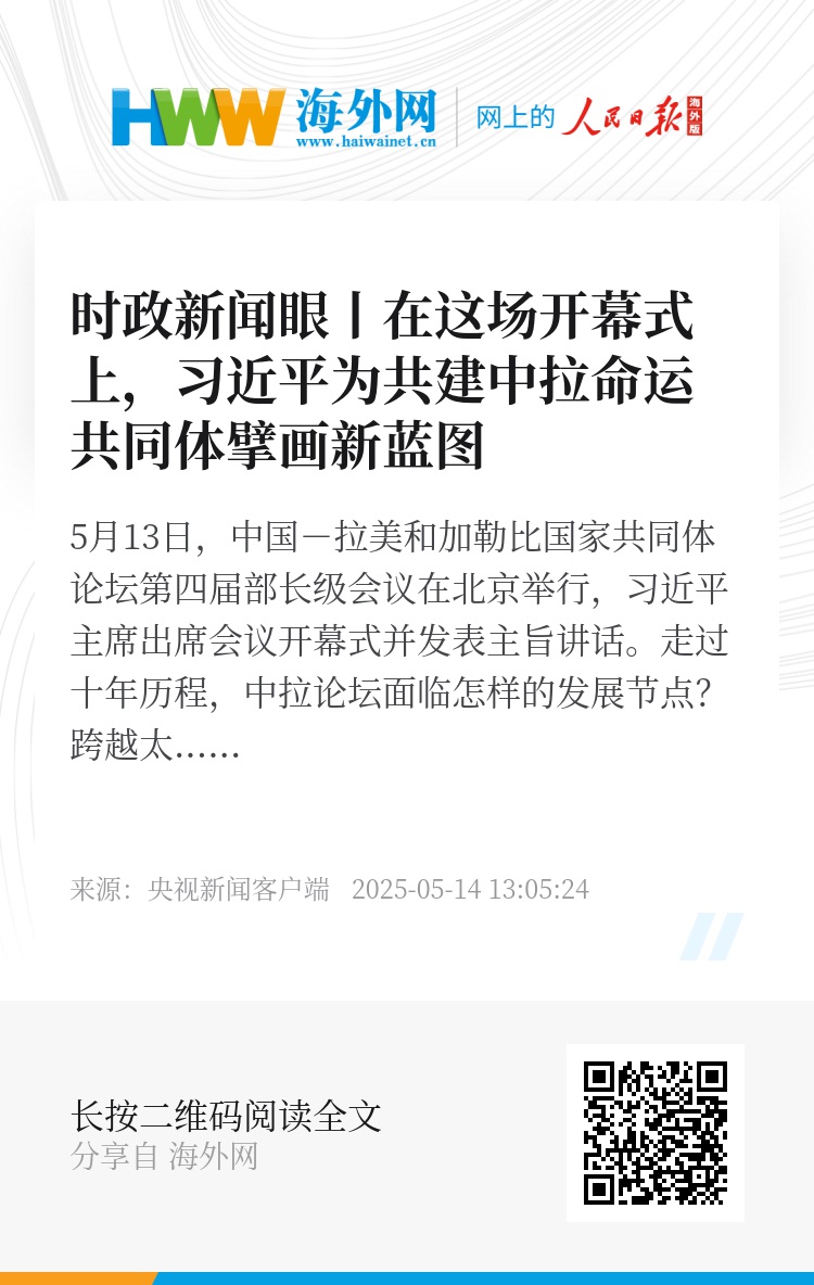 5月13日,中国-拉美和加勒比国家共同体论坛第四届部长级会议在北京举行,习近平主席出席会议开幕式并发表主旨讲话。