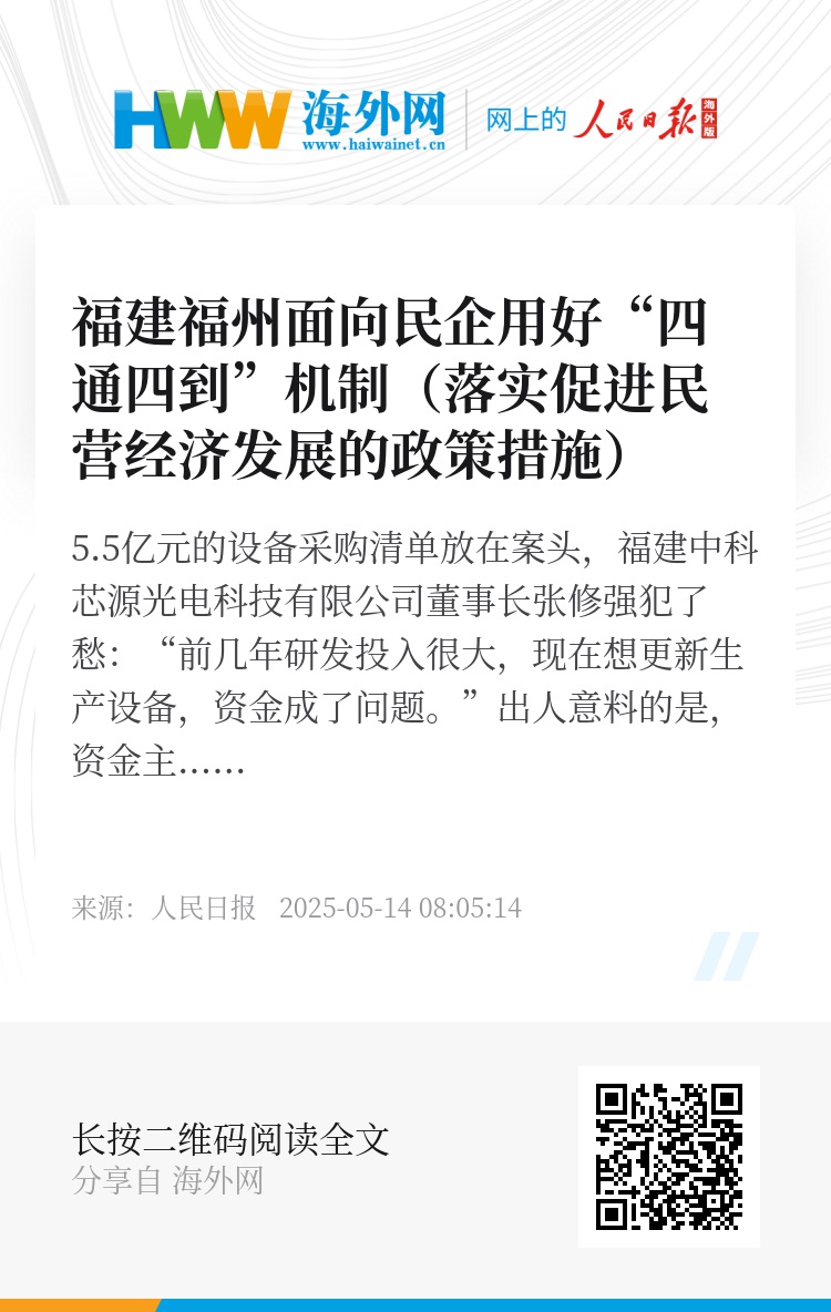 出人意料的是,资金主动找上了门。“福州的‘四通四到’机制,帮到了我们。”张修强说。