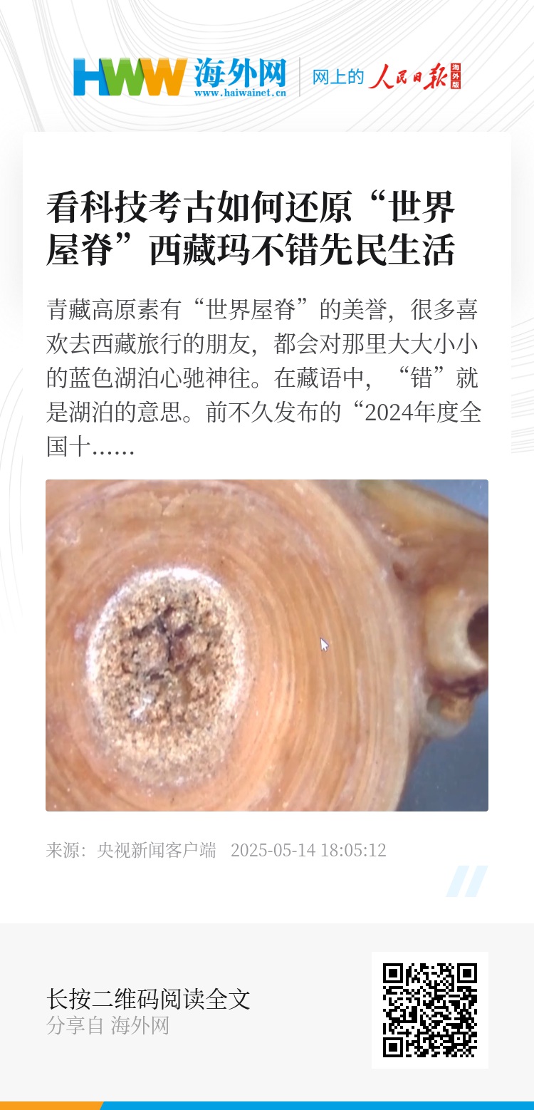 青藏高原素有“世界屋脊”的美誉,很多喜欢去西藏旅行的朋友,都会对那里大大小小的蓝色湖泊心驰神往。在藏语中,“错”就是湖泊的意思。前不久发布的“2024年度全国十大考古新发现”里,有一个“错”成功入选,它就是——西藏玛不错遗址,而且它还是“十大考古新发现”中唯一一处新石器时代湖滨遗址,遗址中出土了大量的动植物遗存。人类是如何适应青藏高原这片土地的?当时的先民是依靠什么生存?一系列谜题,在古DNA鉴定、碳氮稳定同位素分析等科技手段的帮助下得到答案。让我们一起打开“世界屋脊”上先民的生存图景和历史画卷。