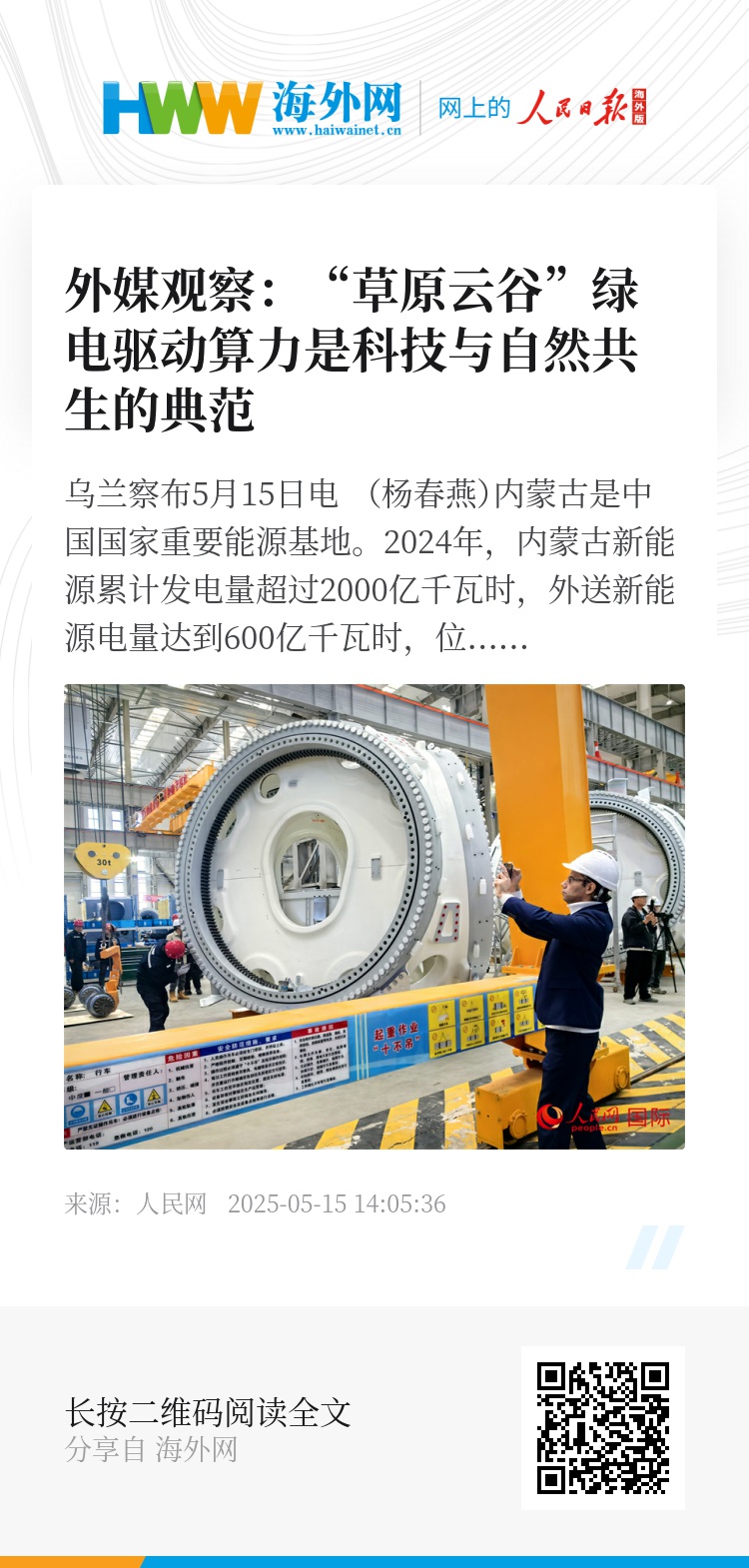 他说:“此前我对内蒙古在绿色能源领域的创新实践知之甚少,虽曾听闻当地通过太阳能、风能等多元可再生能源体系推动绿色能源革新,但直到此次实地参观工厂和风力发电设施,我才深刻感受到他们正朝着成为绿色能源重镇的目标稳步迈进。”