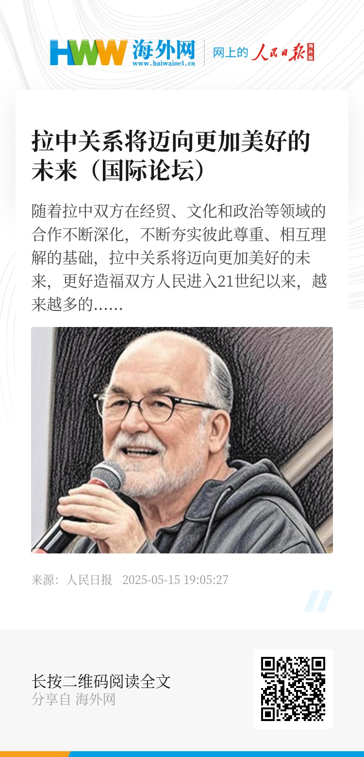 随着拉中双方在经贸、文化和政治等领域的合作不断深化,不断夯实彼此尊重、相互理解的基础,拉中关系将迈向更加美好的未来,更好造福双方人民。