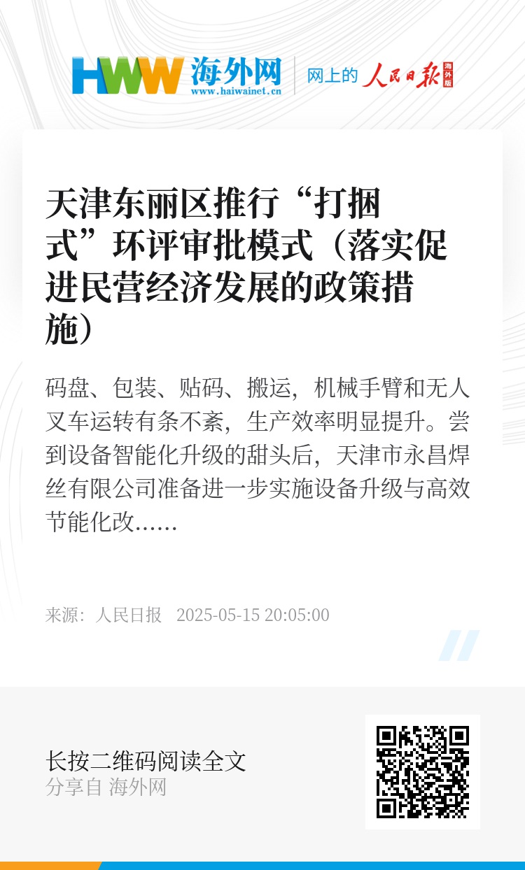 2023年,东丽区在天津市率先推行“打捆式”环评审批工作模式,对同一主体、同一区域、同一类型的多个项目,实行“一本报告报审、一次受理评审、一个环评批复”。如今政策升级,减了适用条件,扩了适用范围——只要属于同一主体、同一类型,就可以对多个项目“打捆式”审批。