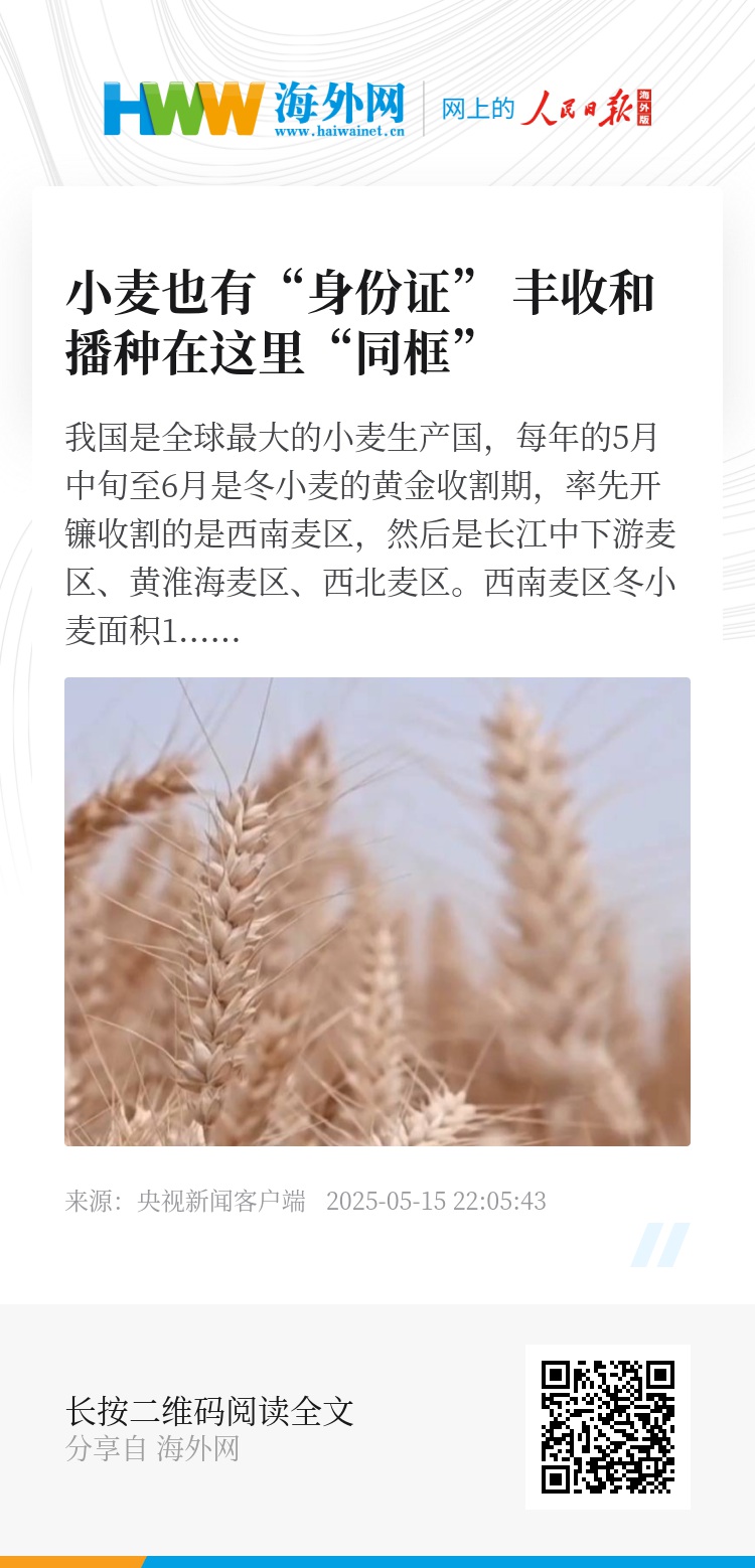 我国是全球最大的小麦生产国,每年的5月中旬至6月是冬小麦的黄金收割期,率先开镰收割的是西南麦区,然后是长江中下游麦区、黄淮海麦区、西北麦区。西南麦区冬小麦面积1500万亩左右、占我国冬小麦面积的4.5%。总台央视记者蒋树林在西南麦区的四川天府粮仓麦收现场,来连线他看看现场的情况↓