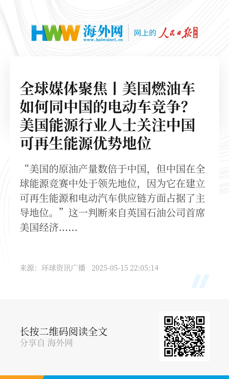 “美国的原油产量数倍于中国,但中国在全球能源竞赛中处于领先地位,因为它在建立可再生能源和电动汽车供应链方面占据了主导地位。”